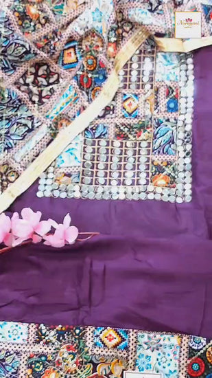 Embrace timeless ethnic charm with this Gujarati Cotton Suit in Wine Color, beautifully crafted with traditional mirror work and intricate embroidery. The rich wine shade adds sophistication, while the breathable cotton fabric ensures all-day comfort. Paired with a plain matching bottom and a complementing fancy dupatta, this unstitched suit- set offers versatility to tailor your perfect fit. Ideal for festive occasions, weddings, parties, or smart casual wear, it blends heritage artistry with modern elegance.