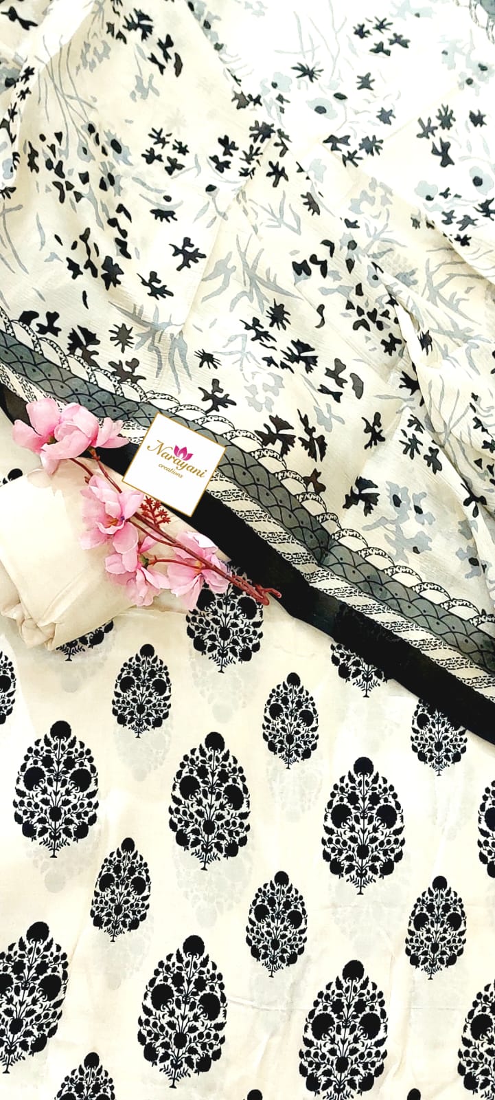 Enhance your ethnic style with this elegant Cream Crepe Printed Suit. Made from premium crepe fabric, this unstitched suit set is adorned with delicate printed booties for a timeless look. The matching printed crepe dupatta complements the outfit beautifully, adding a touch of sophistication. Ideal for casual outings, or special occasions, this versatile suit offers ample fabric to be tailored to your perfect fit.